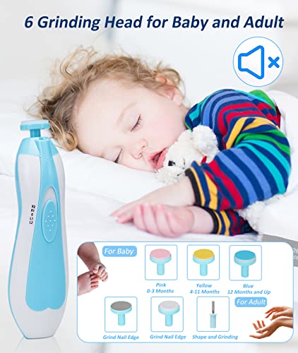 【Prevent Baby Scratches Tender Face】7 in 1 Baby electric nail Trimmer kits super soft trimmer baby nail that won’t damage cuticles or soft nail beds, safely and quickly trim and polish little toenails and fingernails, With whisper-quiet motor and LED front Light aimed at fingernails, You can trim without waking up your sleeping baby. In addtion, it is also suitable for adults.