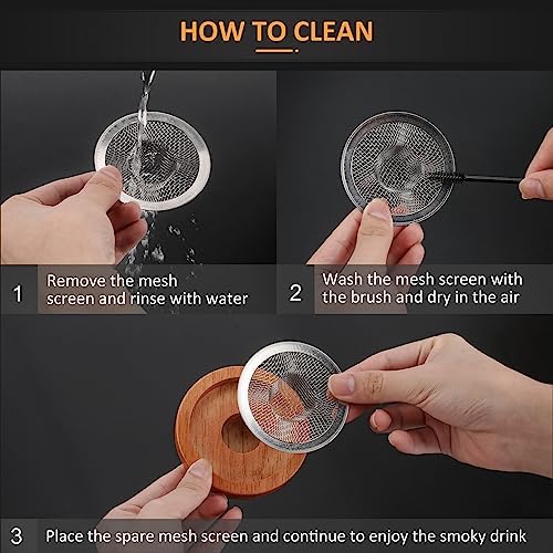 ✅EASY TO USE – The Emosoon Cocktail Smoker Kit is user-friendly, making it easy to use and clean. It fits a variety of whiskey glasses and is perfect for parties, family gatherings or outdoor drinking. Once you’re done with your drink, cleaning it up is hassle-free with the included brush. In addition, there is an extra mesh screen as a spare, allowing you to continue enjoying the deliciousness of smoked cocktails at any time.