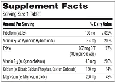 Dietary supplement contains Magnesium, Riboflavin, Vitamin B6, Folic Acid and Vitamin B12