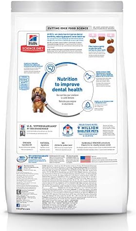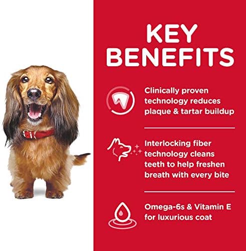 Dog dental health affects so much more than just the teeth. Help support overal health and vitality in your adult dog with Hill’s Science Diet Oral Care Adult Dog Food. Designed with a unique, clinically proven interlocking fiber technology, this unique kibble works to clean dog teeth and freshen breath with every bite. Plus, this premium dog food made with natural ingredients is packed with Omega-6 fatty acids & Vitamin E to help your grown dog keep a healthy coat and skin each and every day. This recipe is formulated with decades of cutting-edge research to be a great-tasting dog food your adult dog can truly enjoy. There’s more to love with the new look of Science Diet. Some of our products also have new names, new kibble shapes & new formulas. Not recommended for puppies and pregnant or nursing dogs