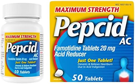 Maximum Strength Pepcid AC Heartburn Relief Tablets with famotidine provide fast-acting prevention and relief of heartburn associated with acid indigestion and sour stomach. Each maximum strength acid controlling tablet is specially formulated with 20 mg of famotidine, a known acid reducer that relieves heartburn brought on by eating or drinking certain food and beverages. Keep a package in your bag or at your desk for easy-access to treat heartburn on-the-go. You can take just one Maximum Strength Pepcid AC as little as 10 minutes before eating, and know you have acid control on your side all day or all night.†* Adults & children 12+, swallow 1 tablet with a glass of water to relieve symptoms; do not chew. Do not take more than 2 tablets in 24 hours. †Prevents heartburn if taken 10 to 60 minutes before a meal. *Based on 9-hour acid control studies during the day and 12-hour acid control studies during the night. Acid control does not imply symptom relief.