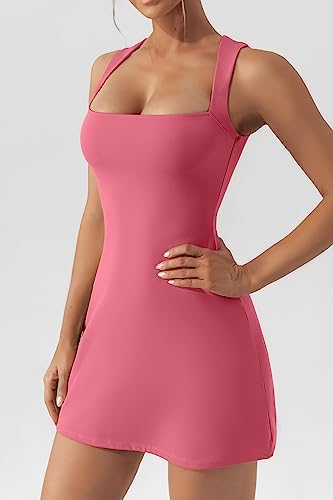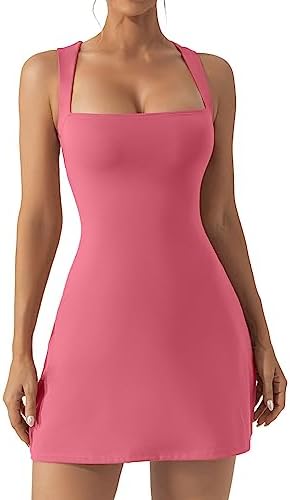QINSEN Womens Square Neck Bodycon Dress Stretch Above Knee Length Tennis Dress