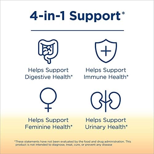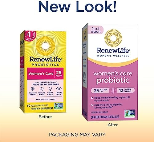 Renew Life Women’s Probiotic Capsules offers 12 probiotic strains to help maintain healthy vaginal bacteria and yeast levels, and support urinary, digestive and immune health (1). Featuring more clinically studied strains than the leading brand (2), these vaginal probiotics contain a blend of 12 different probiotic strains including L. rhamnosus GG, the No. 1 most studied strain (3). With 25 billion cultures, these Renew Life probiotic capsules make it easy for you to support your vaginal, urinary, digestive and immune health. Each strain is clinically tested and formulated by microbiologists and researchers to offer science-backed health benefits you can enjoy every day. Potency, quality and purity are guaranteed through the expiration date. This daily probiotic supplement offers a Non-GMO Project Verified formula that is gluten-free, dairy-free and soy-free. Renew Life puts health and wellness first with supplements that are backed by over 25 years of clinical trials. (1) These statements have not been evaluated by the Food and Drug Administration. This product is not intended to diagnose, treat, cure or prevent any disease. (2) Based on IRI unit sales data, January 2021. (3) L. rhamnosus GG strain, PubMed Clinical Trials, August 2019.