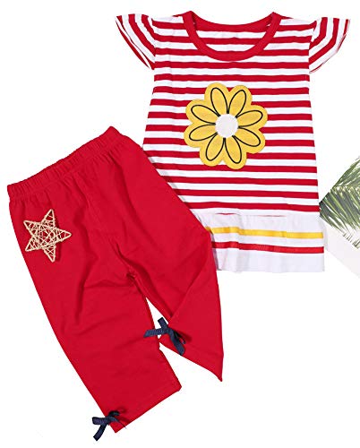 Specification: LUKYCILD Baby Girls Summer Clothes Casual Clothing Suit Short Sleeve Striped T-Shirt +Pants