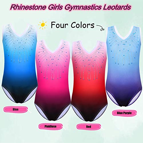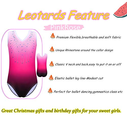 ZNYUNE Girls Gymnastics Sparkle Gradient Color Leotards for kids 3-14 Years 180 PinkRose 8A