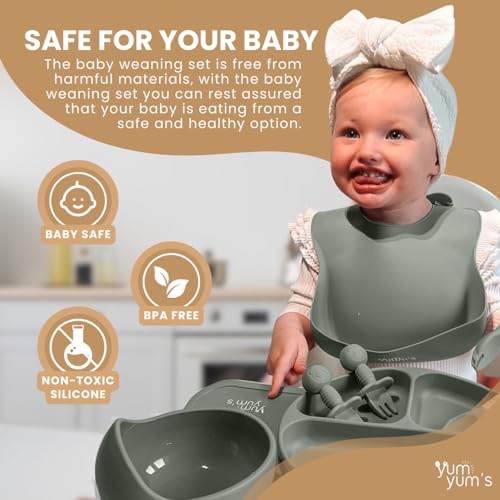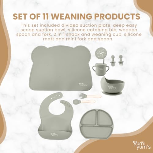 Specification: Yum Yum’s Baby Weaning Set, Silicone Baby Feeding Set of 10 with Suction Bowl, Spoon, Fork & Cup | Weaning Set, Suction Bowl and Baby Plate, Baby Feeding Set, Suction Plate, Baby Gifts & Presents