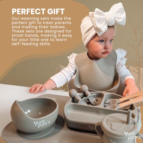 Yum Yum’s Baby Weaning Set, Silicone Baby Feeding Set of 10 with Suction Bowl, Spoon, Fork & Cup | Weaning Set, Suction Bowl and Baby Plate, Baby Feeding Set, Suction Plate, Baby Gifts & Presents
