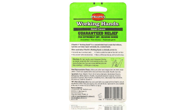 HARDWORKING SKINCARE: O’Keeffe’s Working Hands is a highly concentrated hand cream developed to hydrate and relieve dry skin to supply long-lasting moisturisation for even the most severe cases of dry, cracked hands.