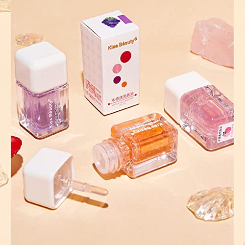 4 PCS Plumping Lip Glow Oil Set, Shimmer Hydrating Mirror Lip Gloss Tinted Lip Balm Lip Care Transparent Toot Lip Oil, Moisturizing Lip Plumper Extreme Lipstick Lip Tint Makeup