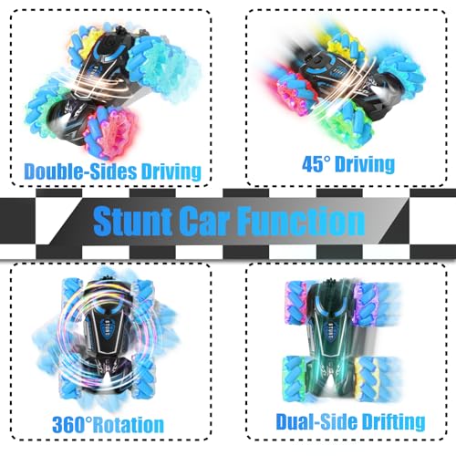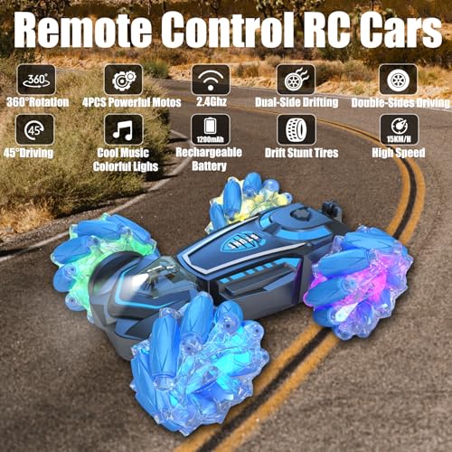 Remote Control Cars for Kids Toys Age 3 4 5 6 7 8 Boys Girls, Remote Control Stunt RC Car with Lights & Music, 2.4Ghz 1200mAh Kids Car Toys Gifts on Christmas Birthday(Blue)