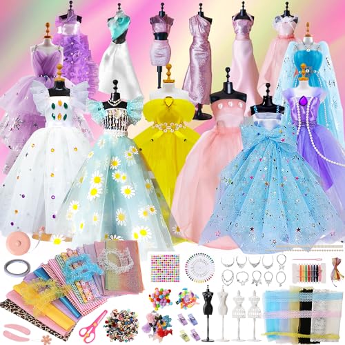 Specification: 600+Pcs Girls Fashion Designer Sewing Kit Mannequin Sketchbook Clothing Scissors Accessories Creative DIY Craft Activity Toys Set Doll Clothes Making Kit Teen Girls Kids Birthday Gift for Age 6-12+