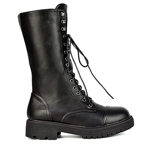 Specification: ESSEX GLAM Womens Lace Up Boots Mid Calf Ankle High Ladies Black Synthetic Leather Combat Biker Shoes