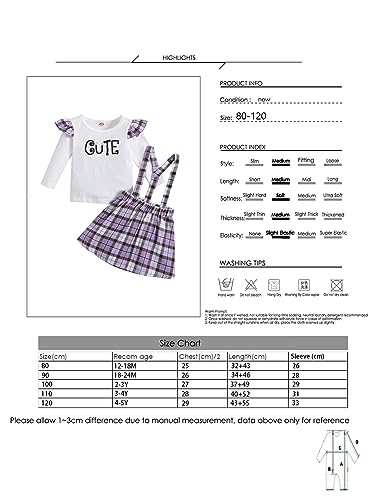 Specification: Qiraoxy Baby Girls Clothes Ruffle Long Sleeve Shirt Top Plaid Bowknot Suspender Skirt Dress Sets 2Pcs Toddler Kids Girl Clothing Outfit 1-5 Years