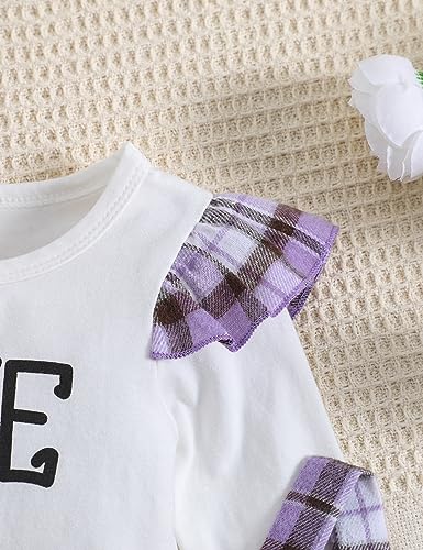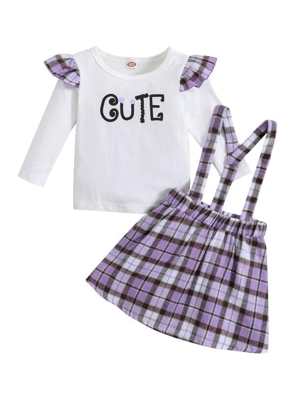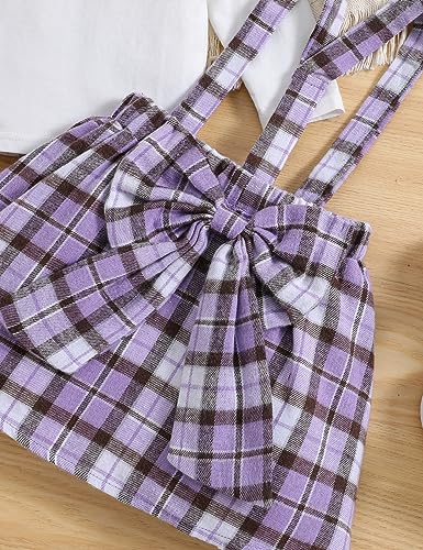 Qiraoxy Baby Girls Clothes Ruffle Long Sleeve Shirt Top Plaid Bowknot Suspender Skirt Dress Sets 2Pcs Toddler Kids Girl Clothing Outfit 1-5 Years
