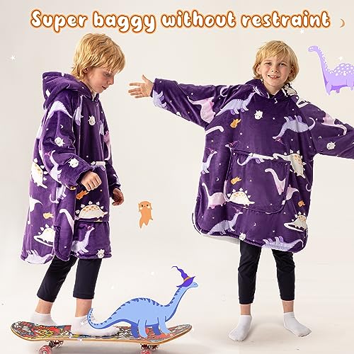 Winthome Blanket Hoodie for Kids, Super Soft Warm Fleece Sweatshirt, Comfortable Wearable Fleece Hoodie, Oversized Blanket Hoodie for Kids Boys Girls