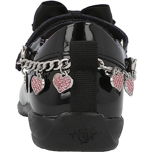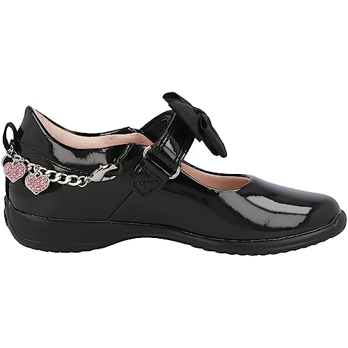 Lelli Kelly Angel patent shoes is available in a F Fitting. Black patent uppers with hook and loop fastening. A removeable bow sits at the hook and loop strap. Shoes have this season will have to have charm bracelet, which is decorated with pink diamante hearts. Pink Leather lining completes the glance. It is a F Fitting Shoe appropriate for ladies with an ordinary foot Comes with a Lelli Kelly Free Gift – Make Up Telephone Make Up