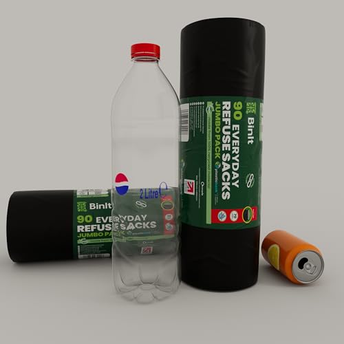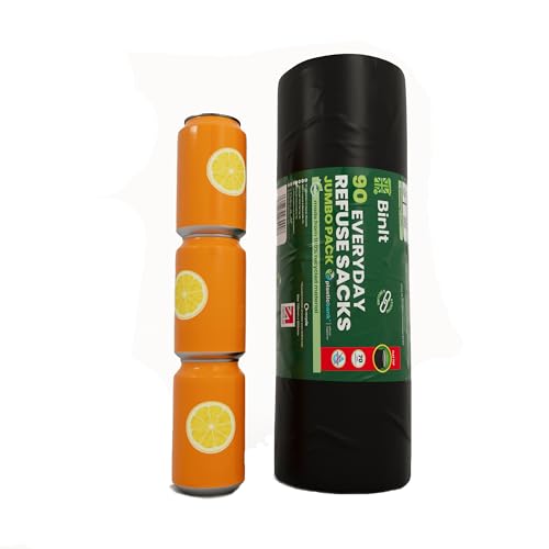 Specification: BinIt 90 Jumbo Pack Everyday 70L Strong & Secure, Refuse Sacks, Bin Bags, Bin Liners, Flat Top, Recycled, Tear Resistant, 30 μm, Perfect for Everyday Use, Household, Office, Kitchen & Caterers