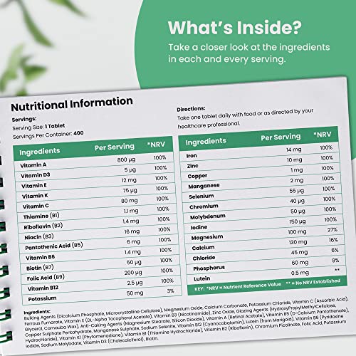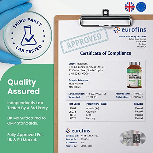 Specification: Multivitamins & Minerals – 400 Vegan Multivitamin Tablets – 13 Month Supply – 27 Essential Vitamins & Minerals per Multivitamin Tablet for Women and Men – Keto Friendly – Made in The UK by VitaBright