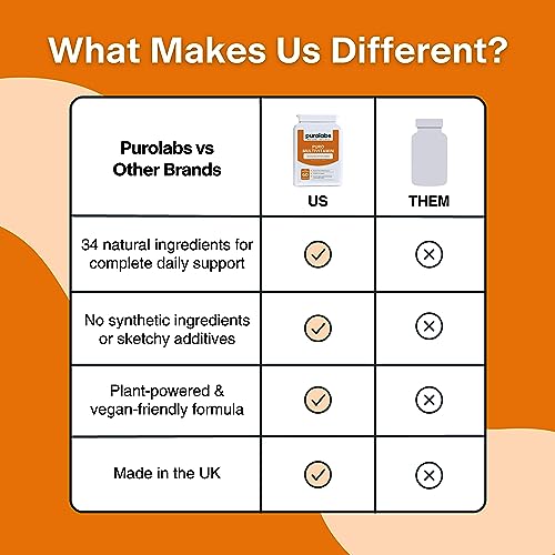 🇬🇧 EXPERTLY FORMULATED IN THE UK – Purolabs Multivitamins is proudly made in the United Kingdom with the highest standards of quality and safety. Our advanced formula is expertly formulated with research-backed, clinically studied ingredients like calcium, magnesium, zinc and more, that offer real benefits, saving you time, hassle, and money!