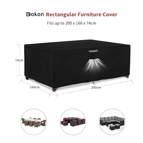 Specification: Dokon Garden Furniture Cover, Waterproof, Windproof, Anti-UV Heavy Duty 420D Oxford Fabric Outdoor Garden Table Cover with Handles, Patio Table and Chair Cover, Rectangular, 200x160x74cm (Black)