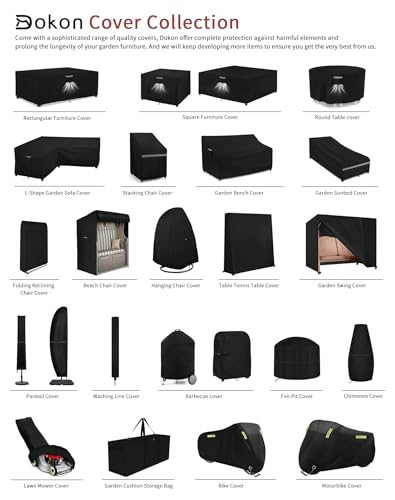 Quality Control & Eco-friendly — All covers have to pass strict test before shipment, Dokon outdoor table cover can be filled with water for up to 48 hours without seepage. And the waterproof laminated backing is free of harmful and carcinogenic chemicals, which complies with EU Environmental Protection 7P standard