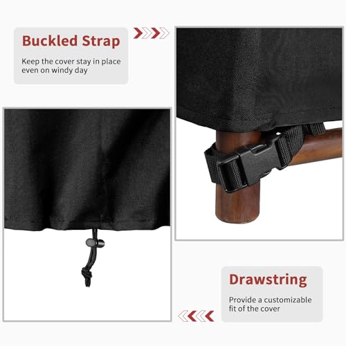 Upgraded Windproof Design — Excluding for the 4 snap closure straps at the bottom of the cover like others, it also has 2 side tightening straps, which was designed to provide an additional easy adjustment for a custom-like fit, so it could safe your cover on the furniture more firmly in the windiest day