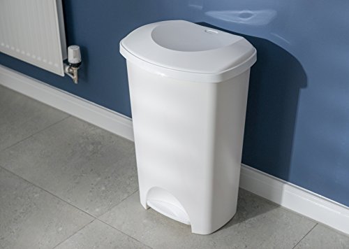 PLASTIC BIN – Large bin with flat back design for perfect fit against kitchen walls and hygienic wide pedal operation for hands free convenience!