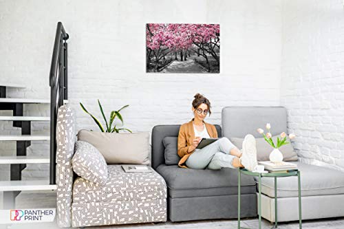 Panther Print, Canvas Wall Art, Pictures for Living Room and Bedroom, Black & White, Pink Blossoms Framed Prints for Walls, Print for Special Occasions (12×8 Inch)