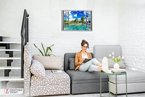 Panther Print, Modern Canvas Wall Art for Living Room, Framed Prints for Hallway and Stairs, Caribbean Beach Holiday 3D Window Effect, Prints for Special Occasions (36×24 Inch)