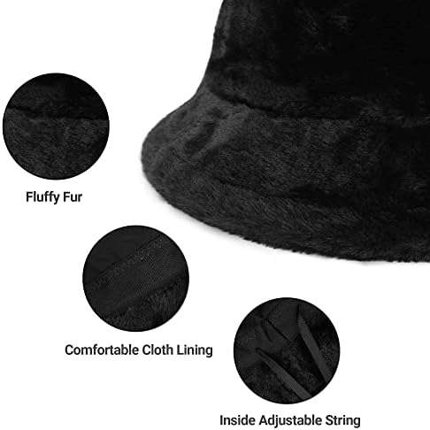 Umeepar Winter Faux Fur Bucket Hat Fluffy Warm Hat for Women Men