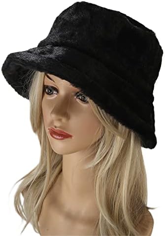 winter warm faux fur fluffy fuzzy furry plush bucket hat for women in various colors pattern