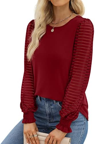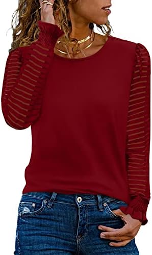 WEESO Casual Crewneck Tunic for Women Striped Sleeve Dressy Tops womens long sleeve new trendy tops