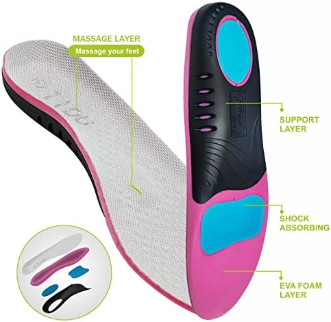 We offers a removable, premium orthotic insole with added strong arch support, enhance comfort and ease pain on the foot and heel, make you comfortable all day. We also give away a pair of memory foam cushioned insoles for you to replace.
